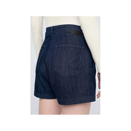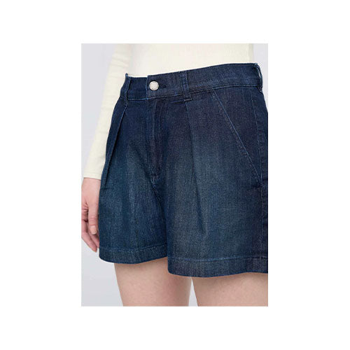 Lightweight denim for hot weather comfort Front pleated detailing for a contemporary look