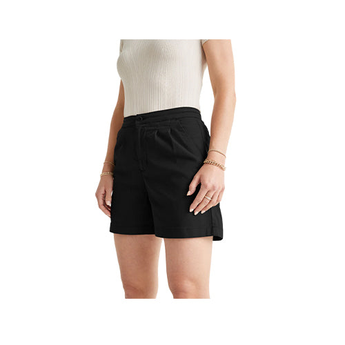 A high rise hot weather option in a lightweight, breathable fabric for all-day comfort. Design details include front pleats, welt back pockets, and an elastic waistband detail for versatility of styling.