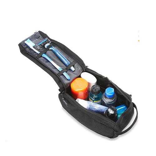 Pack and go ease. Our medium Groomer Travel Kit is sized for weekend travel. It offers a balance of space for all the essentials including shampoo, shaving cream, deodorant and more. Internal mesh pockets help keep track of the little stuff. It's designed for easy countertop deployment with an internal daisy chain strip for keeping stuff like a razor and toothbrush at the ready.