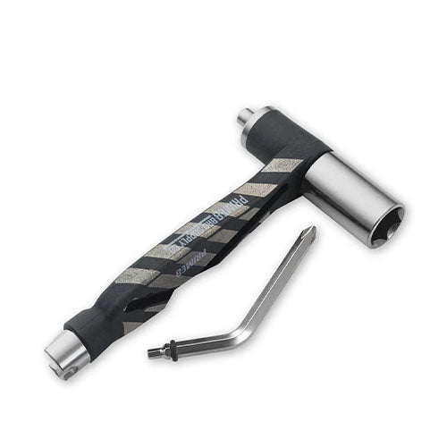 Multi-functional tool that allows you to adjust axle nuts, change bearings, mounting hardware, and the kingpin nut on the top of the truck.