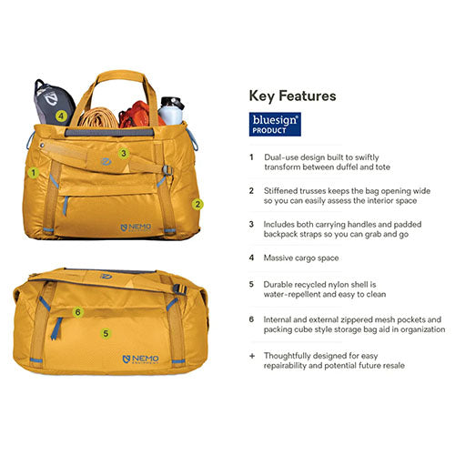 A certified bluesign® product, Double Haul is made from recycled materials and manufactured to meet the highest standards that protect both people and the planet. Its highly durable exterior fabric is made from bluesign® approved 420D recycled nylon that’s then treated with urethane to resist water and staining. Side release buckles quickly transform the bag from duffel to tote, and stiffened trusses create structure to keep the tote upright and open for easy packing. Internal and external zippered mesh pockets create built-in organization opportunities, and all bags include a matching carrying case that can double as a packing cube.