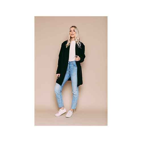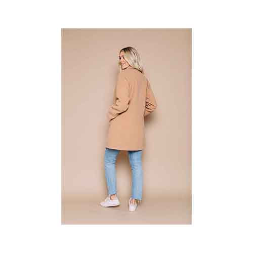 This cozy cocoon coat has a versatile shawl collar that can be worn up or down. Fully lined and with a self belt, it will keep you cozy and stylish this winter.