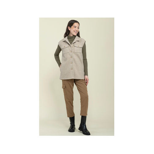 This is already a staff favourite! Such a fantastic outfitting piece. With chest patch pockets, inseam side pockets, full lining and dyed to match buttons, it’s a beautiful layering piece and made in the same luxuriously soft and stretchy fabric as the Avery Coat and Sammi Jacket. Roomy enough that the outfit options are endless – from a slim fitting tee or turtleneck to a sweater or sweatshirt. Body length is 31” from high shoulder to hem in size small.