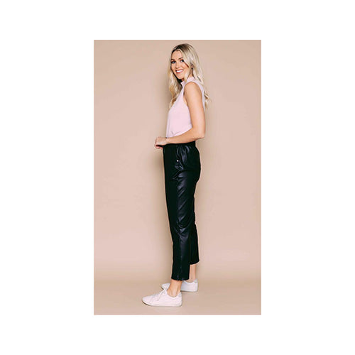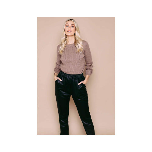 We've dressed up our joggers! These high rise, straight leg, pull-on fleece pants have a subtle faux leather finish that means you can really dress them up or down. Super soft and drapy, featuring inseam pockets, back patch pockets and a small side slit detail at the hem. Looks awesome mixed and matched with any of our cozy knit sweaters.